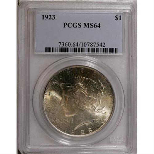 <B>1923 $1 MS64 PCGS.</B></I> PCGS Population (52358/13581). NGC Census: (93962/25076). Mintage: 30,800,000. Numismedia Wsl. Price for NGC/PCGS coin in MS64: $43. (#7360)<BR><BR><B>Coin Engraver:</B> Anthony de Francisci<BR><BR><b>Shipping:</b> Coins & Currency (<a target="_blank" href="http://www.heritageauctions.com/common/shipping.php">view shipping information</a>)