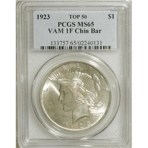 <B>1923 $1 MS65 PCGS.</B></I> VAM 1F, Chin Bar, Top 50. PCGS Population (1/1). NGC Census: (0/0). (#133757)<BR><BR><b>Shipping:</b> Coins & Currency (<a target="_blank" href="http://www.heritageauctions.com/common/shipping.php">view shipping information</a>)
