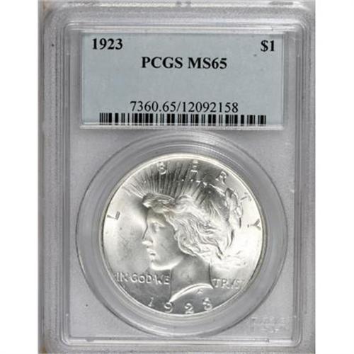 <B>1923 $1 MS65 PCGS.</B></I> PCGS Population (12071/1407). NGC Census: (22961/1456). Mintage: 30,800,000. Numismedia Wsl. Price for NGC/PCGS coin in MS65: $126. (#7360)<BR><BR><B>Coin Engraver:</B> Anthony de Francisci<BR><BR><b>Shipping:</b> Coins & Currency (<a target="_blank" href="http://www.heritageauctions.com/common/shipping.php">view shipping information</a>)