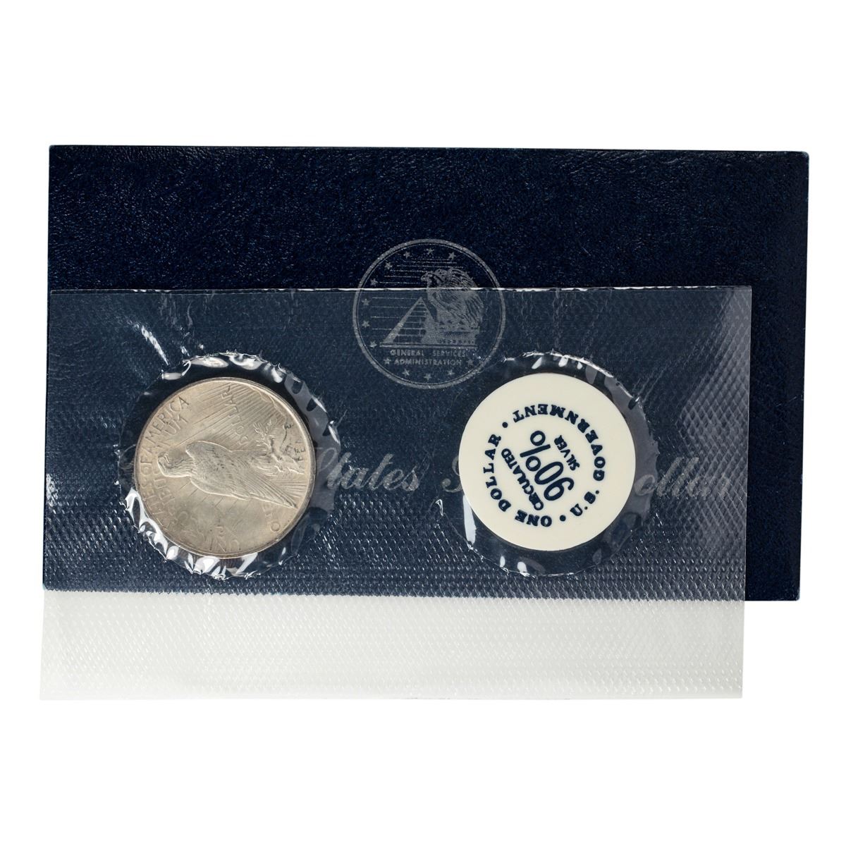 One 1923 $1 Peace Silver Dollar Coin GSA Soft Pack and Envelope.