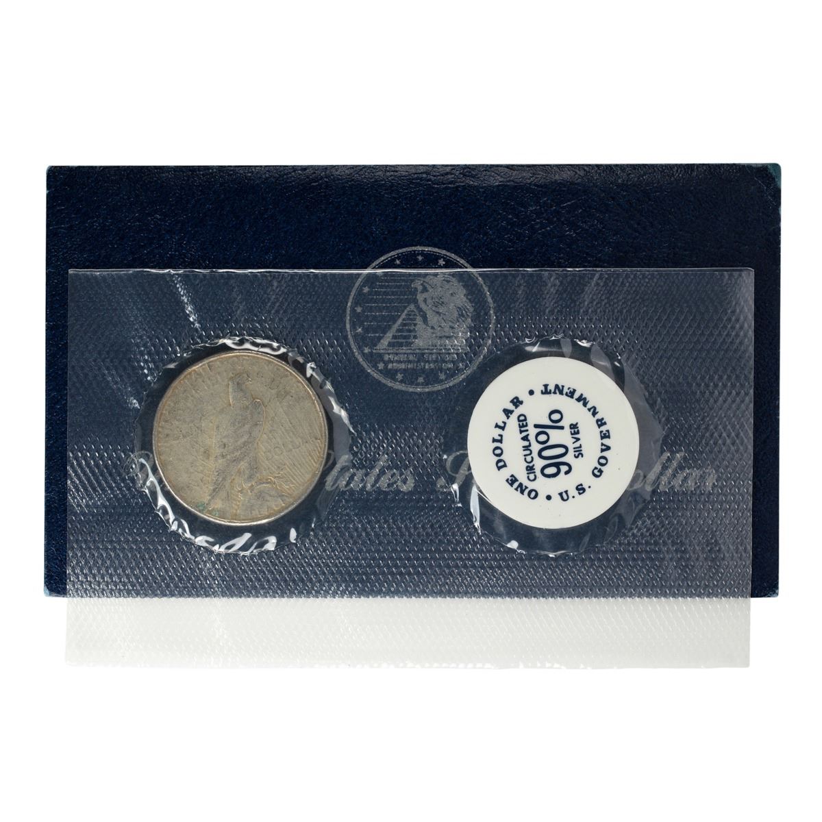 One 1923 $1 Peace Silver Dollar Coin GSA Soft Pack and Envelope.