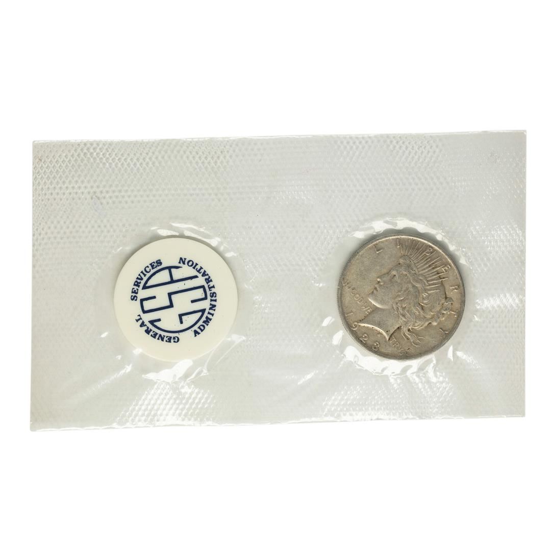 One 1923 $1 Peace Silver Dollar Coin GSA Soft Pack.