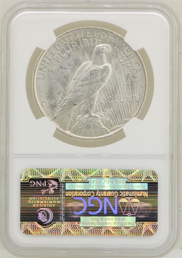 One 1923 $1 Peace Silver Dollar Coin NGC MS63. NGC Certified.