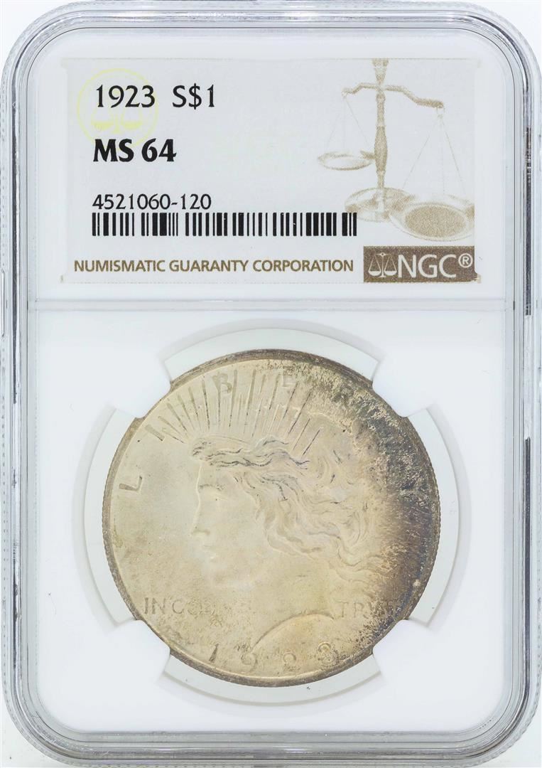 One 1923 $1 Peace Silver Dollar Coin NGC MS64. NGC Certified.