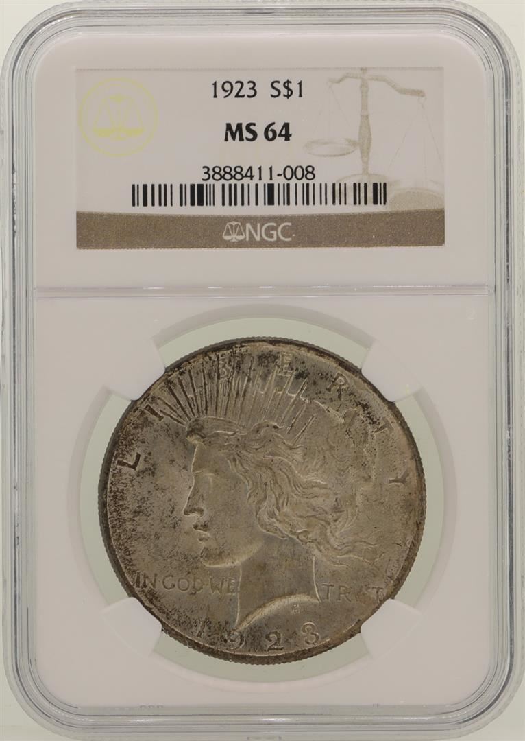 One 1923 $1 Peace Silver Dollar Coin NGC MS64. NGC Certified.