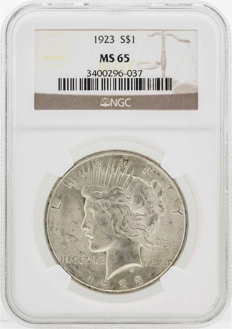 One 1923 $1 Peace Silver Dollar Coin NGC MS65. NGC Certified.