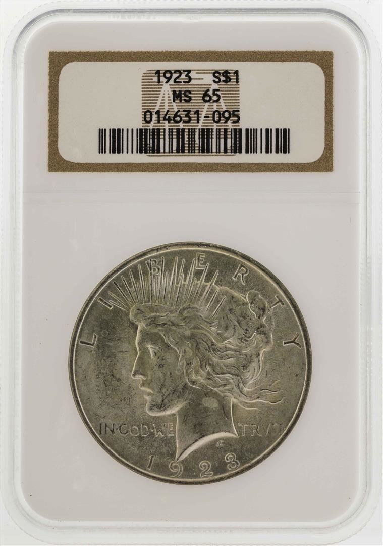 One 1923 $1 Peace Silver Dollar Coin NGC MS65. NGC Certified.