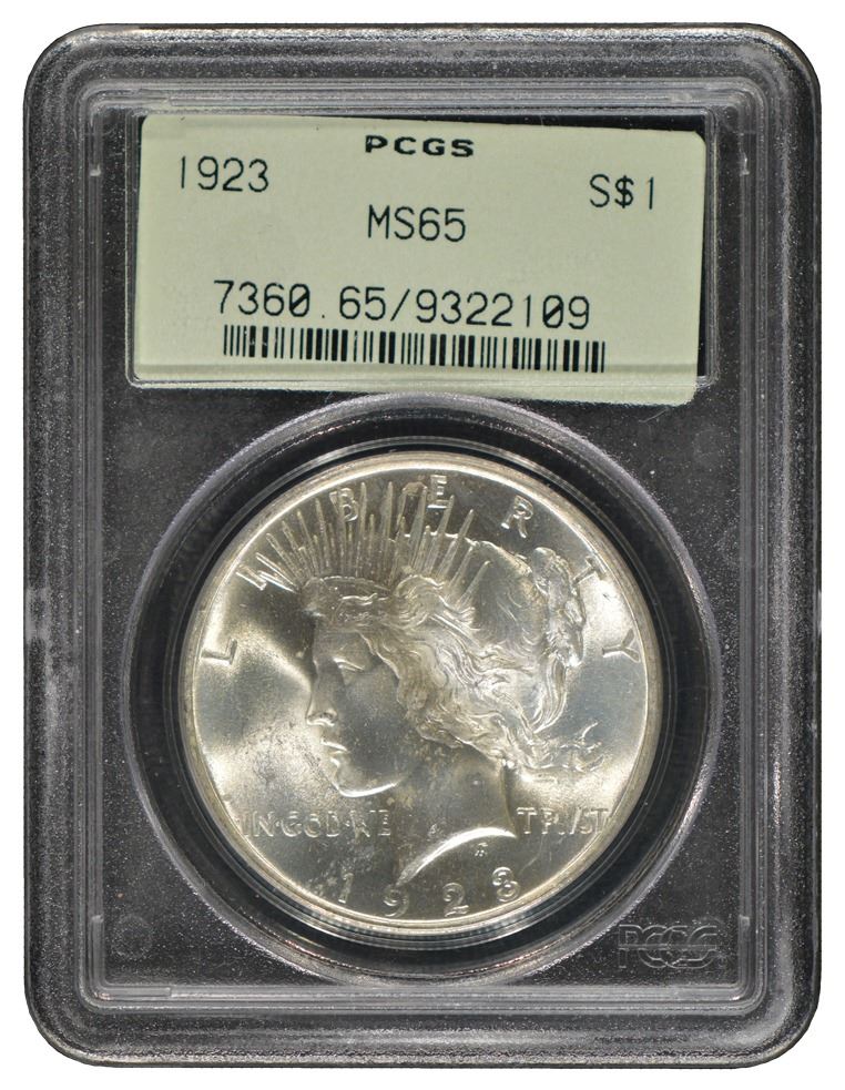 One 1923 $1 Peace Silver Dollar Coin NGC MS65.
