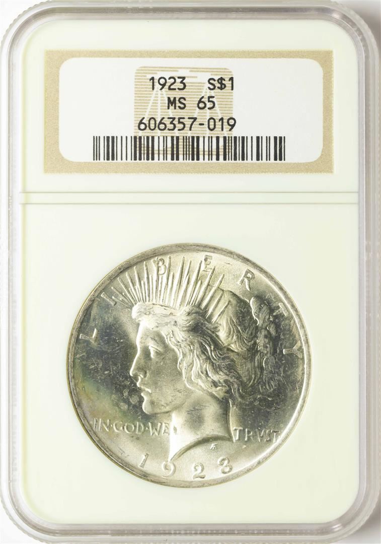 One 1923 $1 Peace Silver Dollar Coin NGC MS65. NGC Certified.