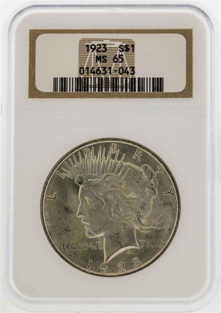One 1923 $1 Peace Silver Dollar Coin NGC MS65. NGC Certified.