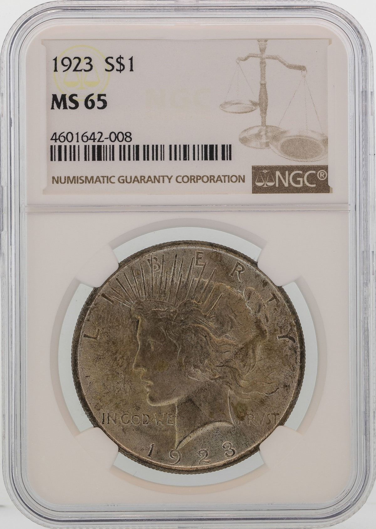One 1923 $1 Peace Silver Dollar Coin NGC MS65.