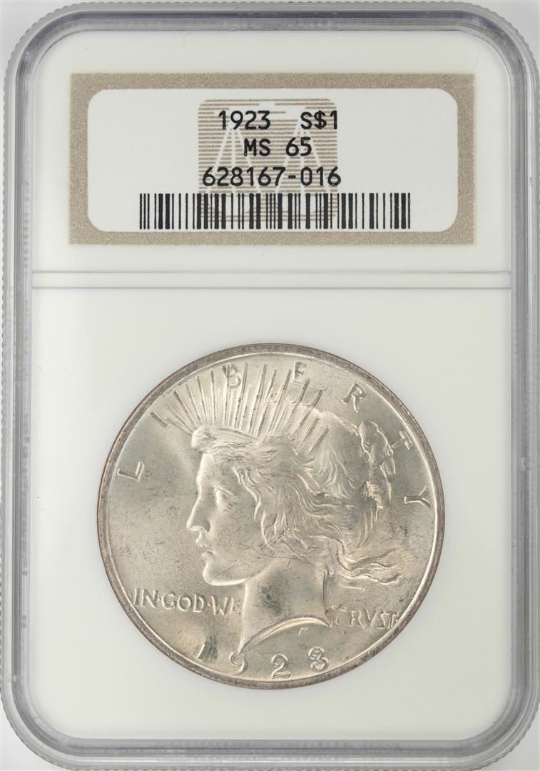 One 1923 $1 Peace Silver Dollar Coin NGC MS65. NGC Certified.