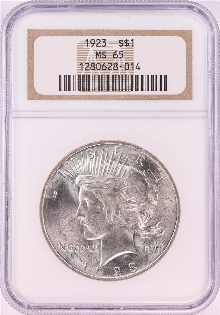 One 1923 $1 Peace Silver Dollar Coin NGC MS65. NGC Certified.