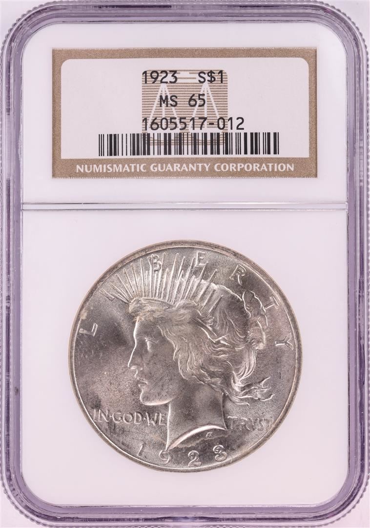 One 1923 $1 Peace Silver Dollar Coin NGC MS65. NGC Certified.