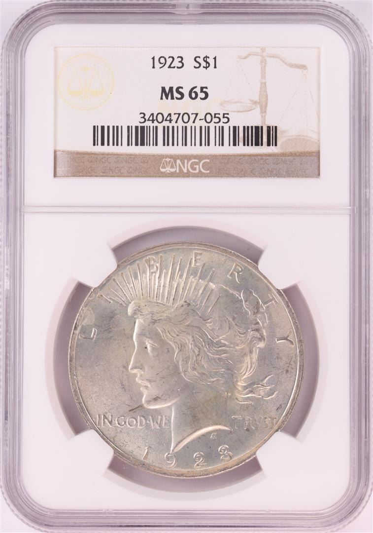 One 1923 $1 Peace Silver Dollar Coin NGC MS65. NGC Certified.