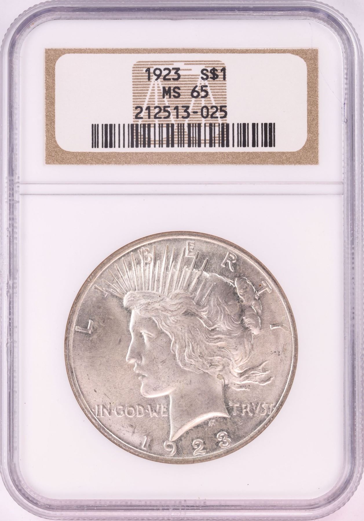 One 1923 $1 Peace Silver Dollar Coin NGC MS65.