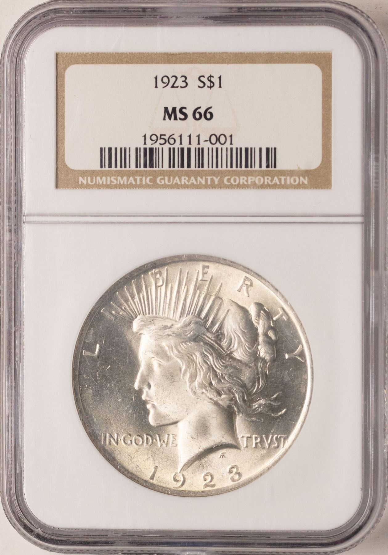 One 1923 $1 Peace Silver Dollar Coin NGC MS66.