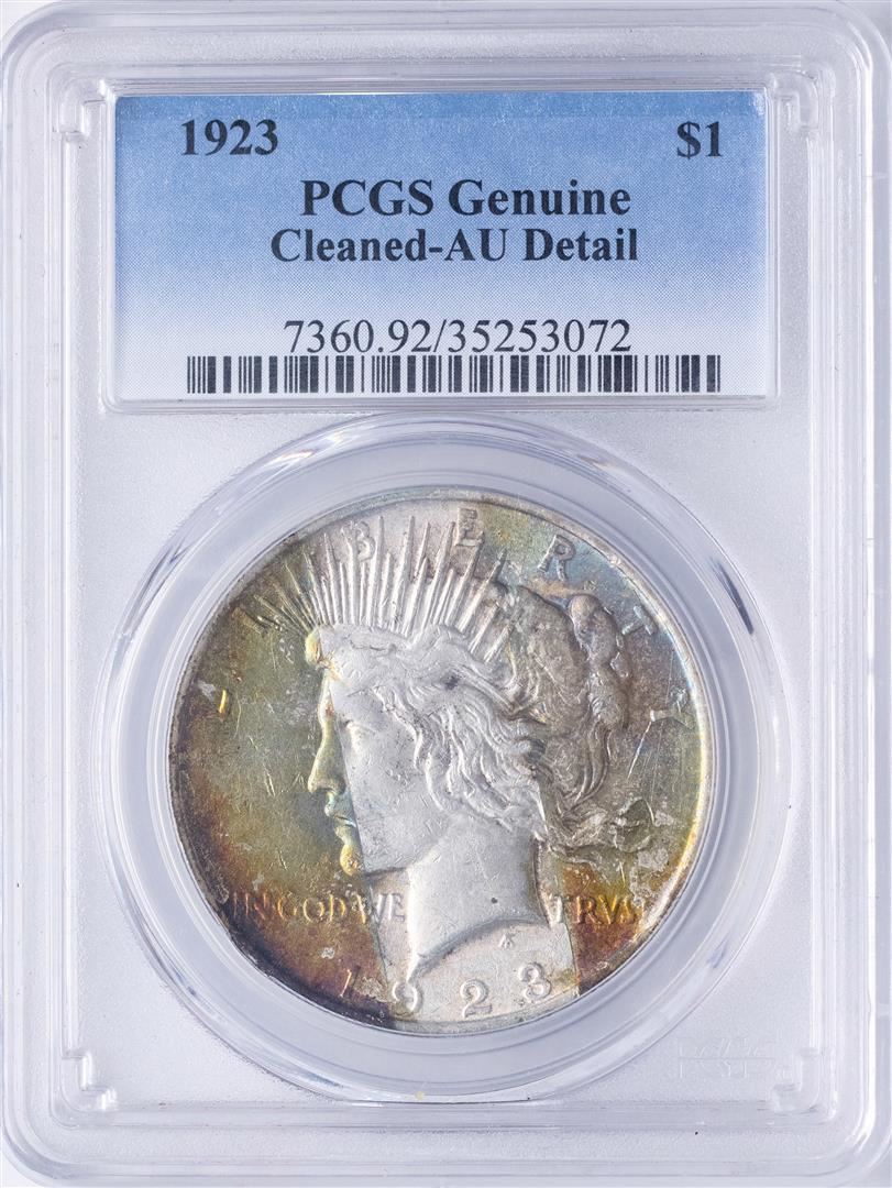 One 1923 $1 Peace Silver Dollar Coin PCGS AU Details AMAZING Color. PCGS Graded.