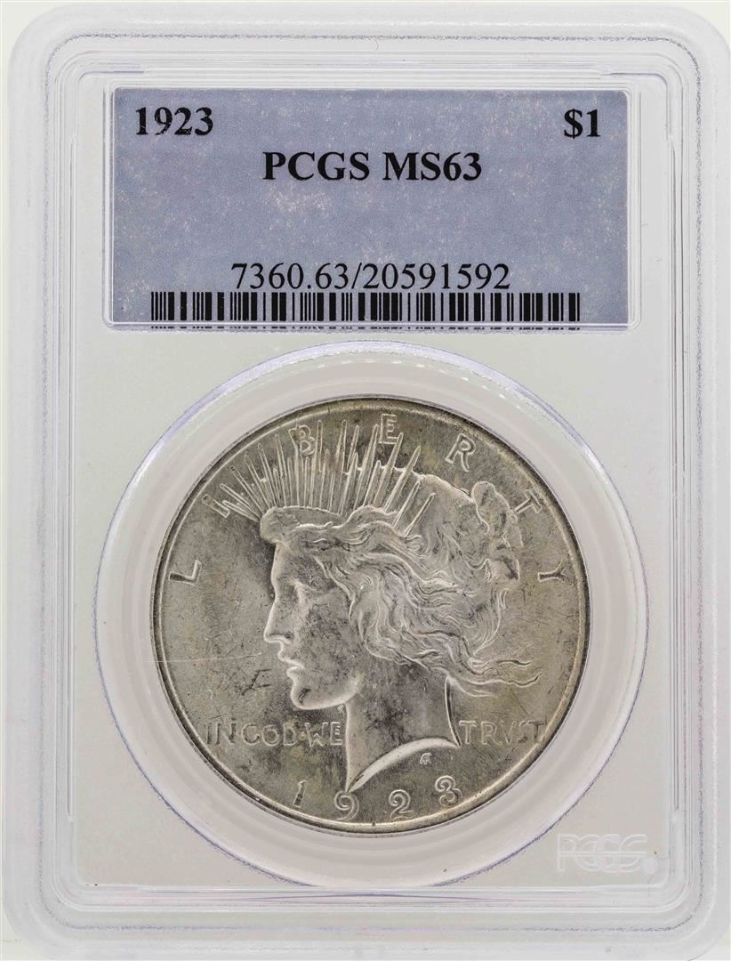 One 1923 $1 Peace Silver Dollar Coin PCGS MS63. PCGS Graded.