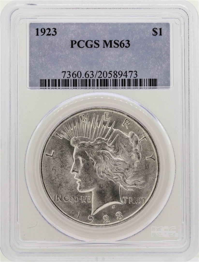 One 1923 $1 Peace Silver Dollar Coin PCGS MS63. PCGS Graded.