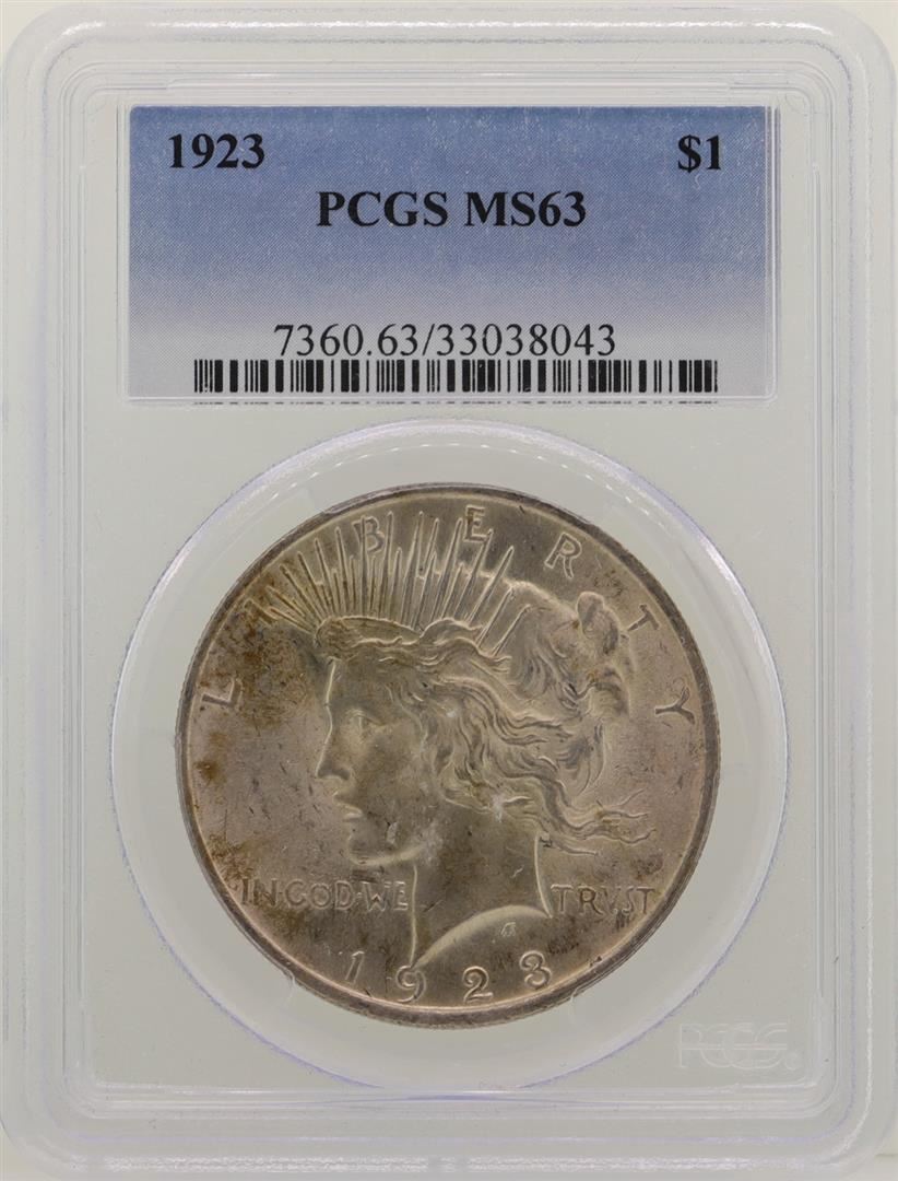 One 1923 $1 Peace Silver Dollar Coin PCGS MS63. PCGS Graded.