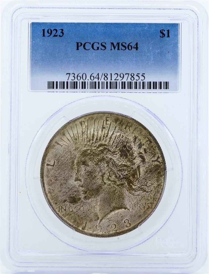 One 1923 $1 Peace Silver Dollar Coin PCGS MS64. PCGS Graded.
