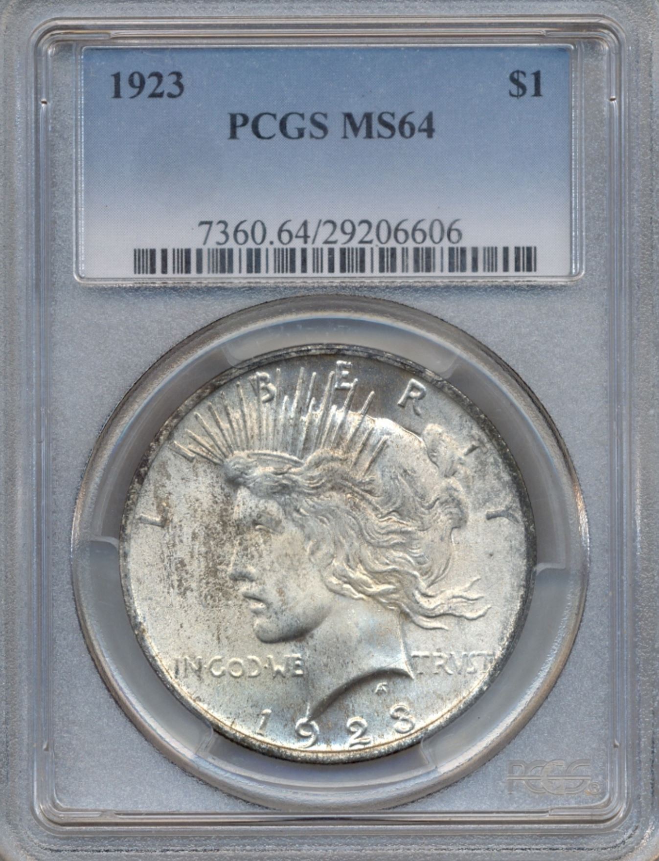 One 1923 $1 Peace Silver Dollar Coin PCGS MS64.