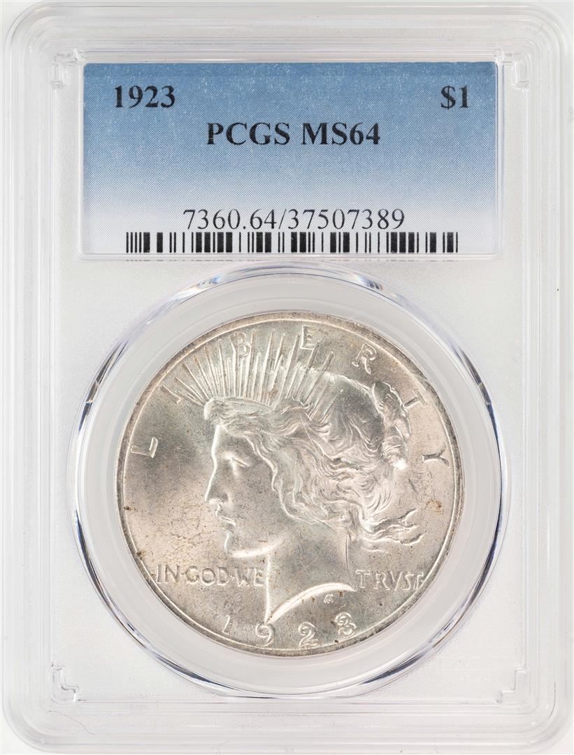 One 1923 $1 Peace Silver Dollar Coin PCGS MS64. PCGS Graded.