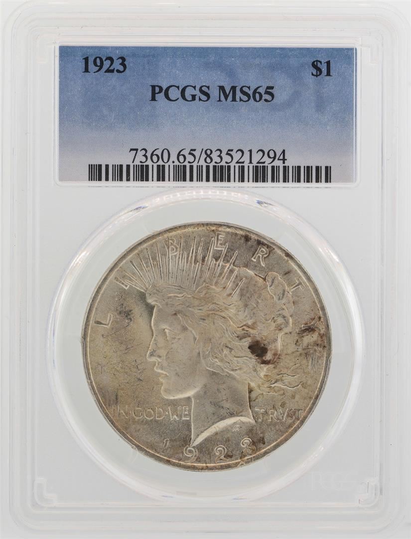 One 1923 $1 Peace Silver Dollar Coin PCGS MS65. PCGS Graded.