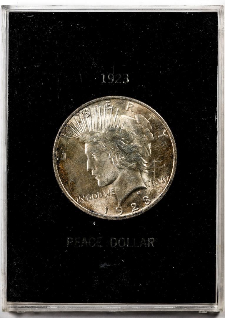 One 1923 $1 Peace Silver Dollar Coin in Holder.