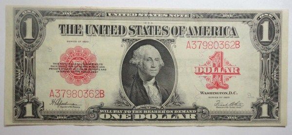 1923 $1 RED SEAL U.S. NOTE XF-AU