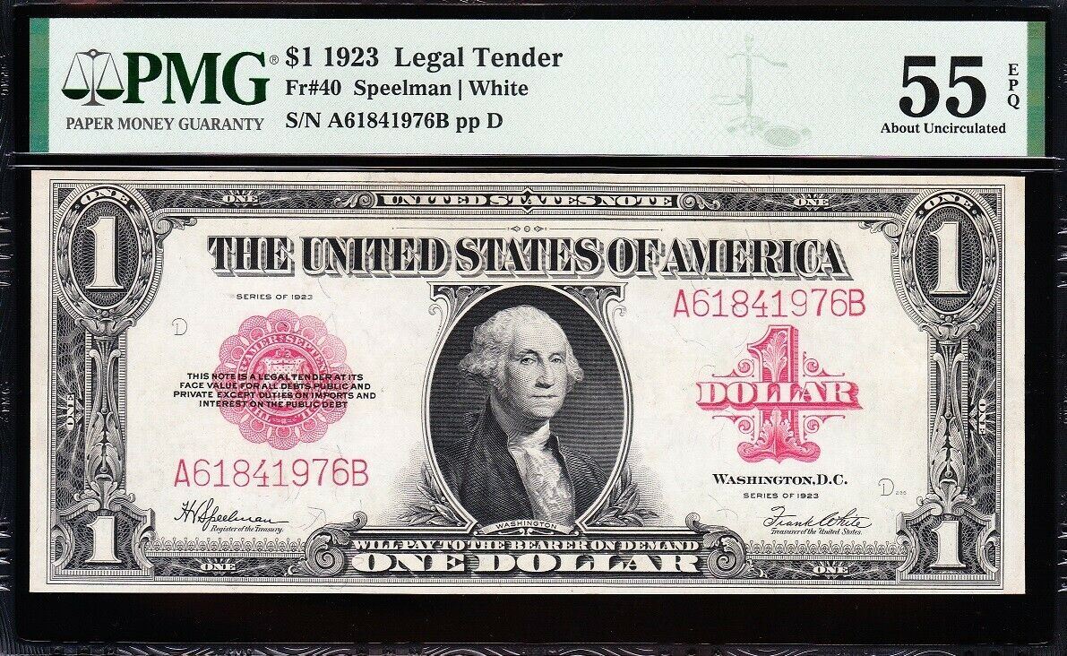 One 1923 $1 Red Seal Legal Tender Note PMG 55EPQ.