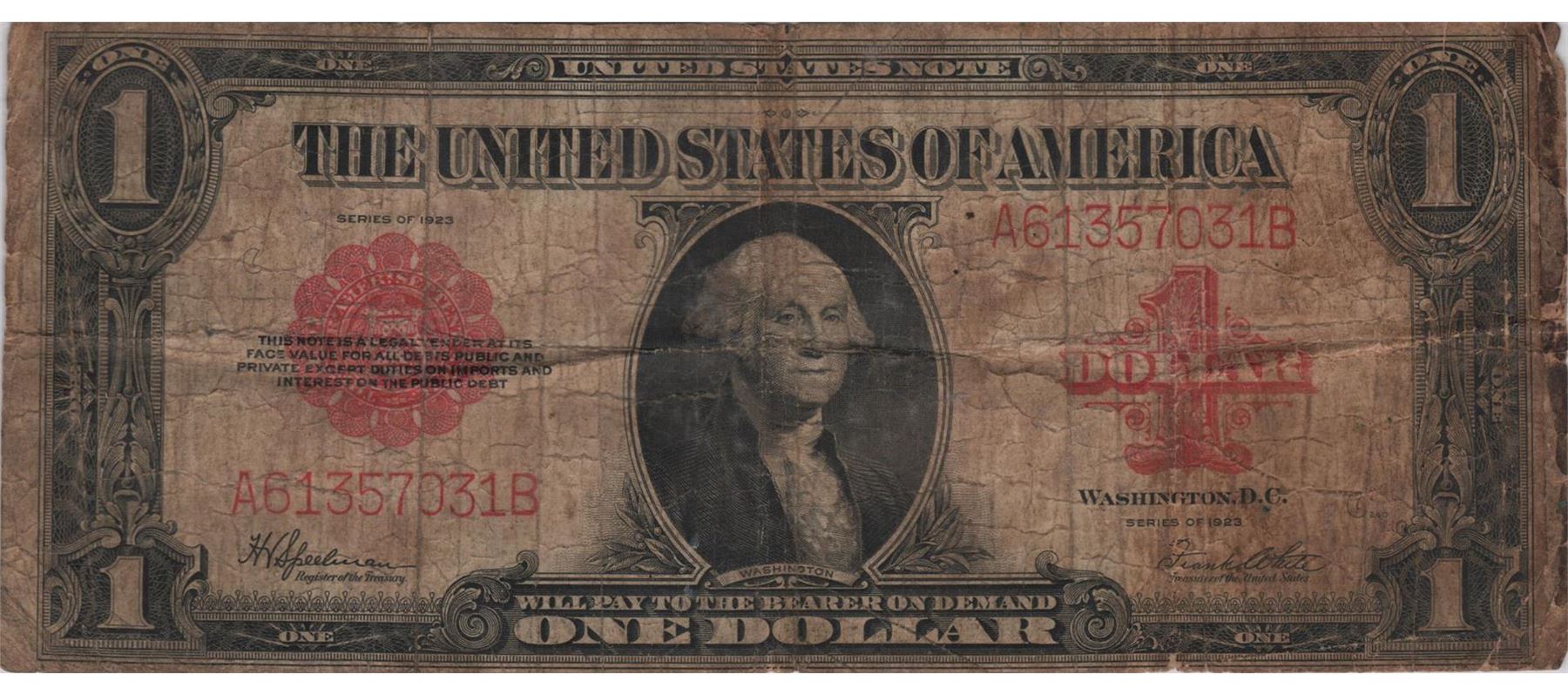 One 1923 $1 Red Seal Legal Tender United States Large Note.
