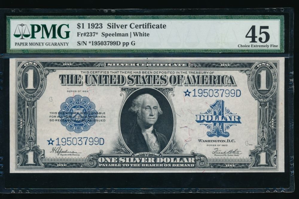 One 1923 $1 STAR Silver Certificate PMG 45.