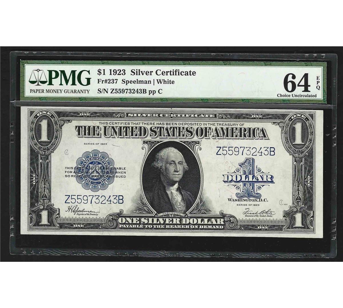 One 1923 $1 Silver Certificate Bank Note PMG 64EPQ. PMG Certified.