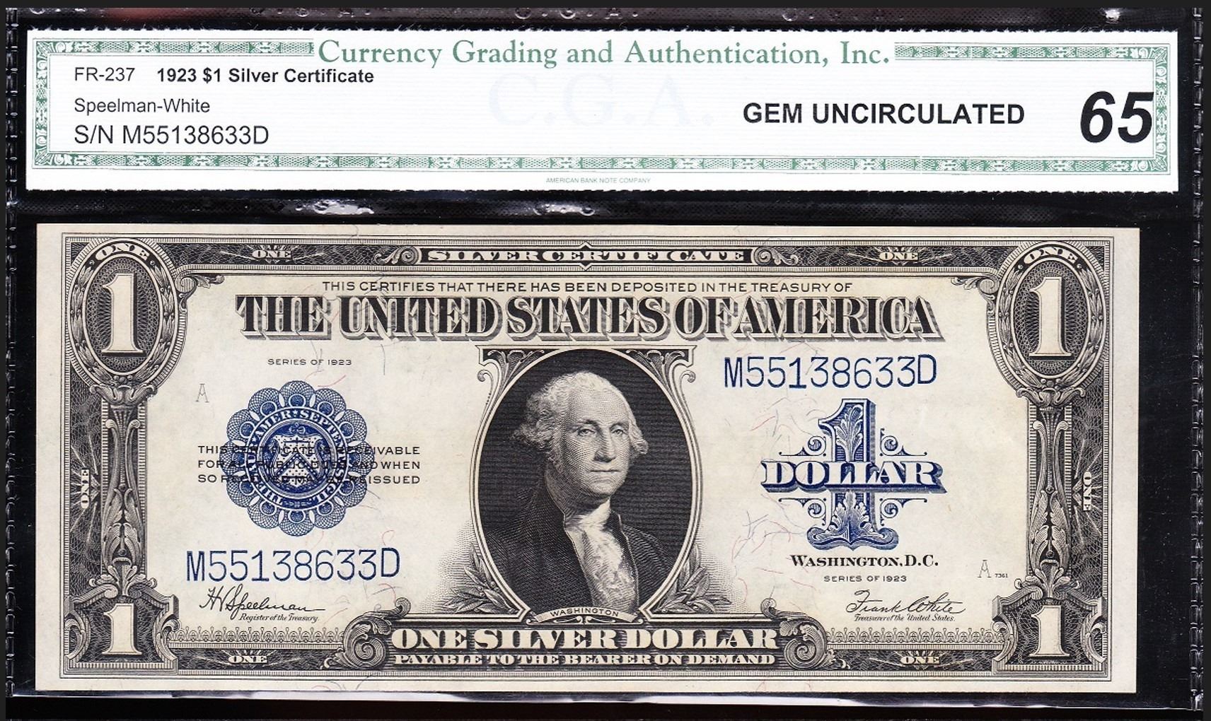 One 1923 $1 Silver Certificate CGA 65.