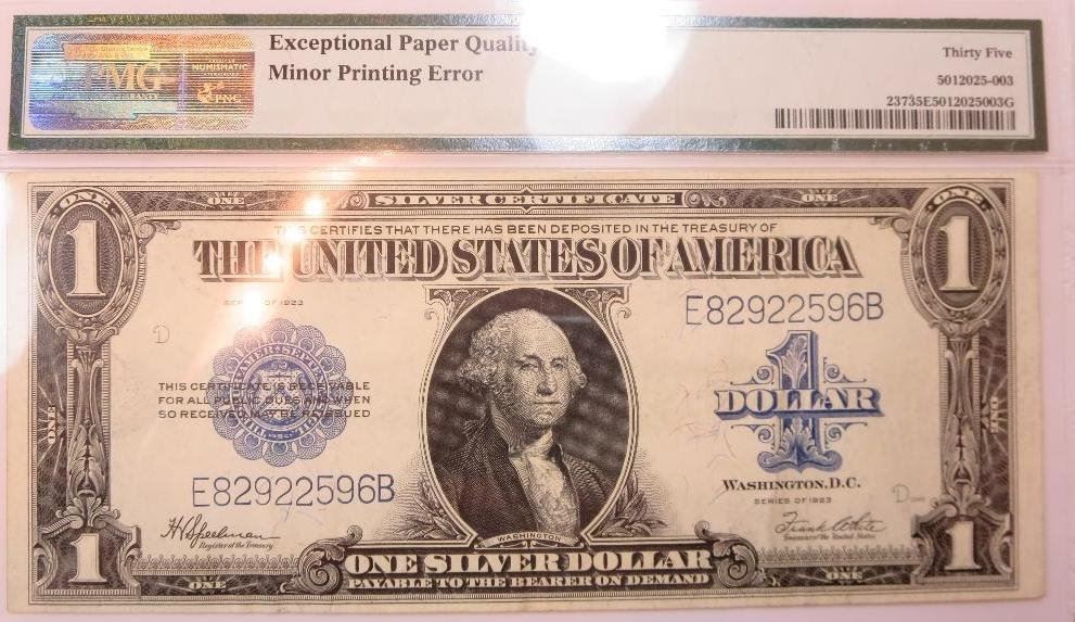 In accordance with the U.C.C. all auctions are considered to be reserve unless advertised as absolute, and during any reserve auction the auctioneer may accept bids from the seller or an agent of the seller. Items are sold 'AS IS', 'WHERE IS' with no guarantees of any kind (except for the authenticity of the item). Grading: Every person has their own opinion. It is the responsibility of the buyer to examine and grade to their own satisfaction before they bid. ABSOLUTELY NO ITEMS RETURNS ON THE BASIS OF GRADE. Buyers shall rely entirely on their own inspection and information. Returns: Internet buyers are entitled to a return within 3 days of receipt of items. In order to return an item, we must be notified of your intent to return within that 3 day period. An email should be sent to service@miy.com. After MIY's response with instructions for return. Items returned will be shipped at buyers expense. All returns are subject to a restocking fee of 15% of the purchase price with a minimum charge of $10. Shipping charges are not refundable. Items must be returned in the same holder and condition as they were sold to qualify for refund. Bidders are responsible for knowing which item they are bidding on. Bidder should inquire decline to bid if they are unsure of what they are bidding on. Once you have won the bid you have effected a contract and will be expected to pay for the item. The auctioneer reserves the right to accept bids in any increment he feels is in the best interests of his clients, the seller. Bidders are responsible any taxes or fees imposed by their state . MIY.com is providing Internet pre-auction and live bidding as a service to Bidder. Bidder acknowledges and understands that this service may or may not function correctly the day of the auction. Under no circumstances shall Bidder have any kind of claim against MIY.com or anyone else if the Internet service fails to work correctly before or during the live auction. MIY.com reserves the right to withdraw or re-catalog items in this auction.