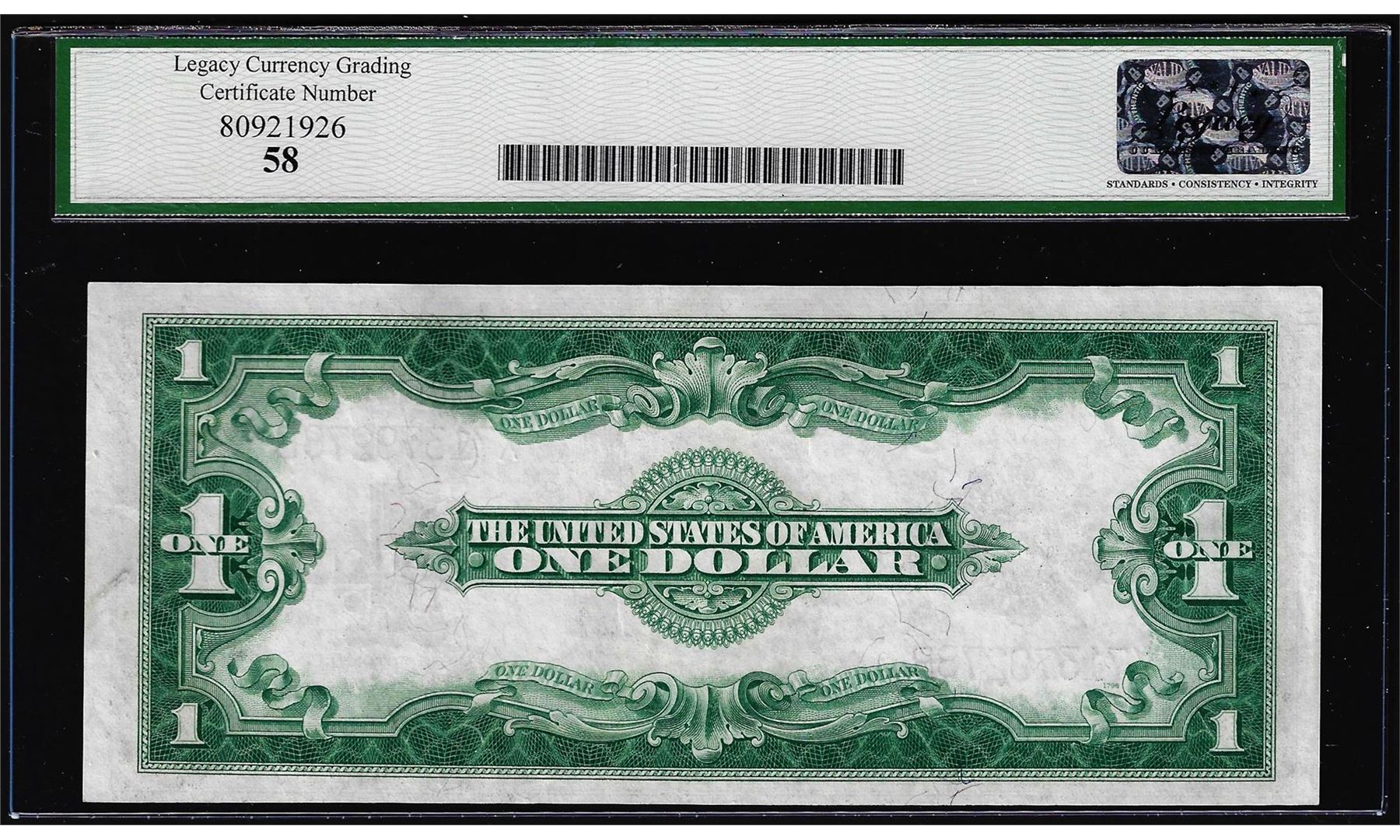 One 1923 $1 Silver Certificate Note Fr.237 Legacy Choice About New 58. Legacy Graded.