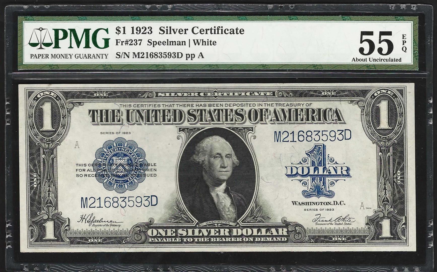 1923 $1 Silver Certificate Note Fr.237 PMG About Uncirculated 55EPQ