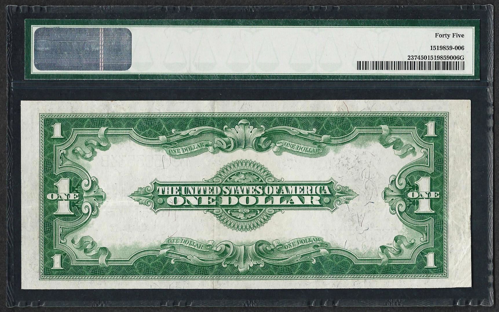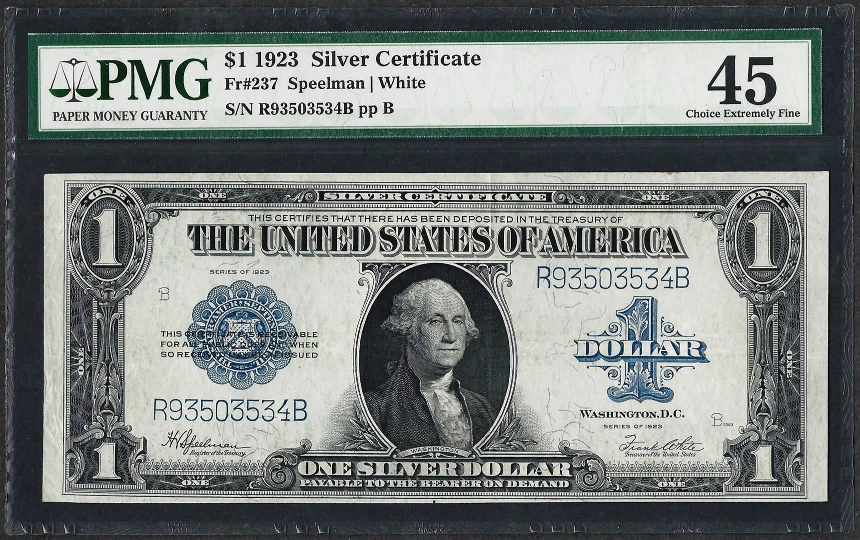 One 1923 $1 Silver Certificate Note Fr.237 PMG Choice Extremely Fine 45. PMG Certified.