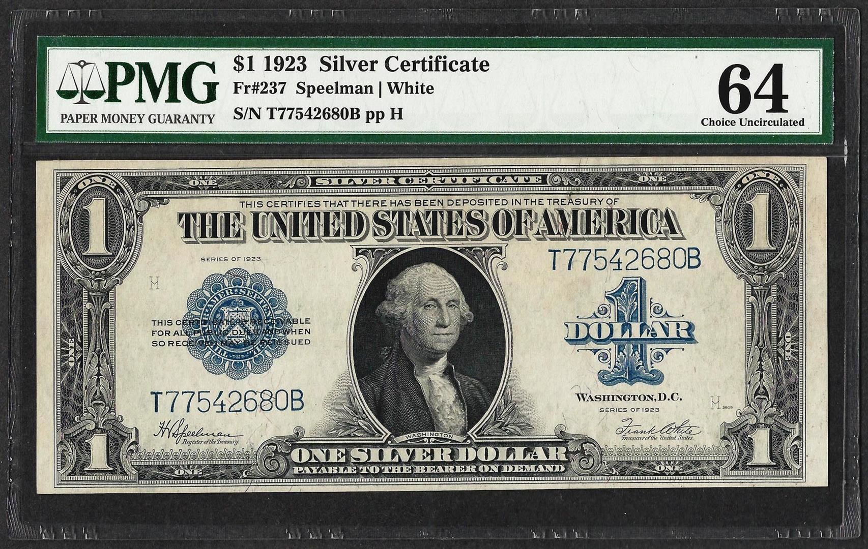 1923 $1 Silver Certificate Note Fr.237 PMG Choice Uncirculated 64