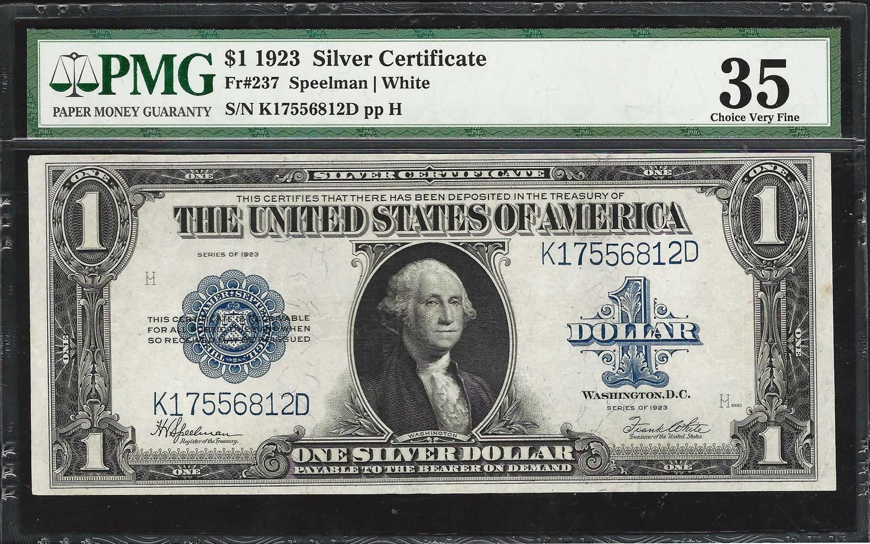 One 1923 $1 Silver Certificate Note Fr.237 PMG Choice Very Fine 35. PMG Certified.