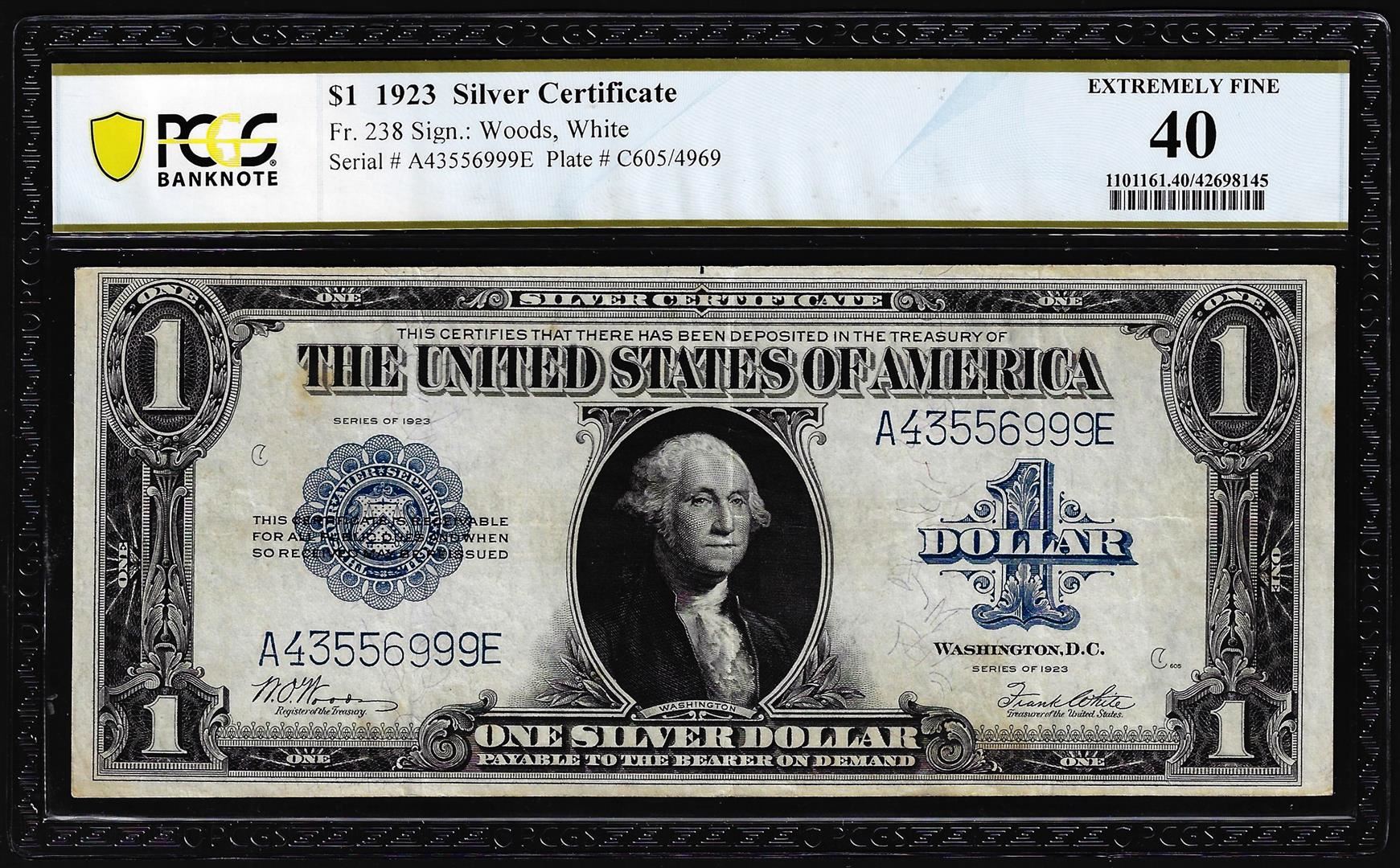 One 1923 $1 Silver Certificate Note Fr.238 PCGS Extremely Fine 40. PCGS Graded.