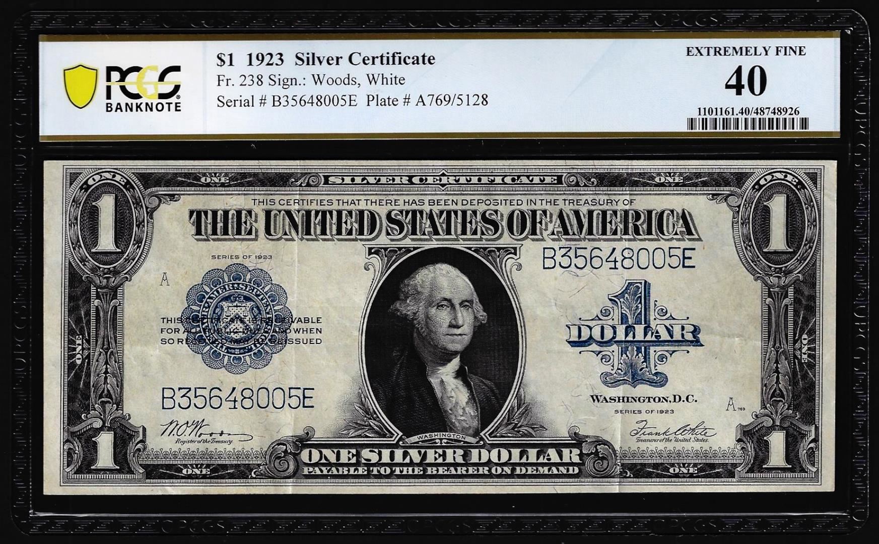 One 1923 $1 Silver Certificate Note Fr.238 PCGS Extremely Fine 40. PCGS Graded.