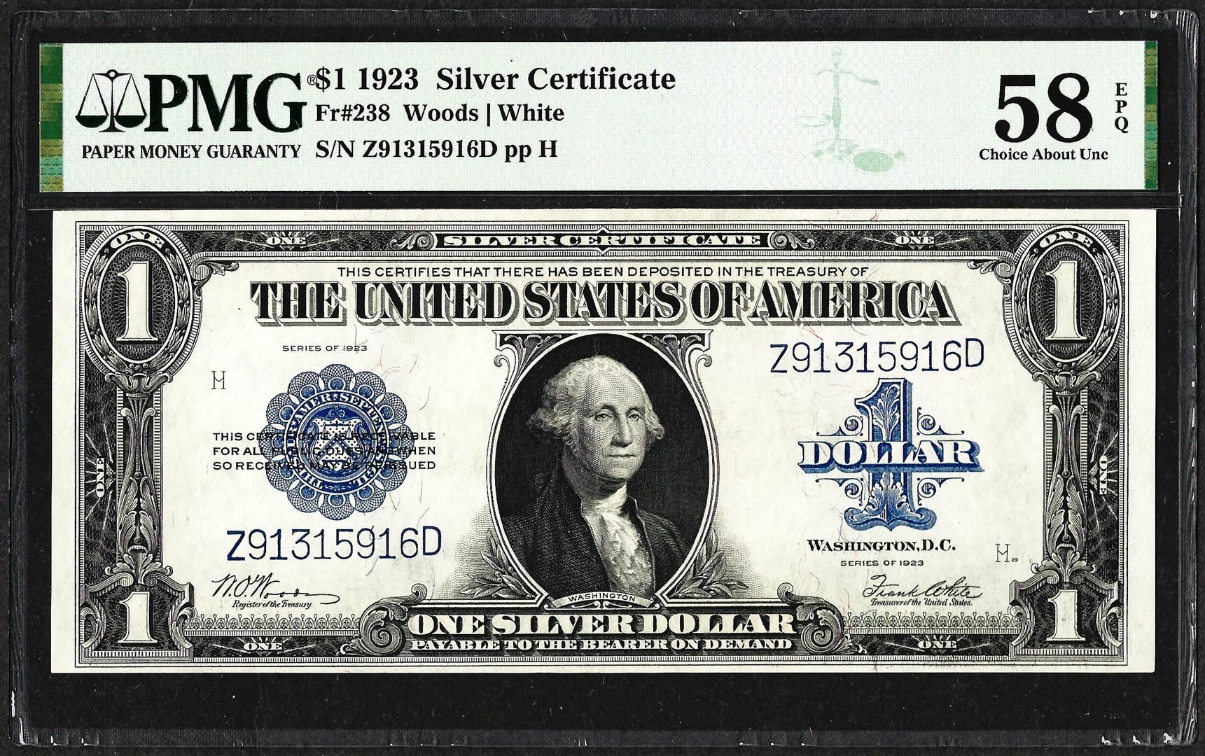 1923 $1 Silver Certificate Note Fr.238 PMG Choice About Uncirculated 58EPQ