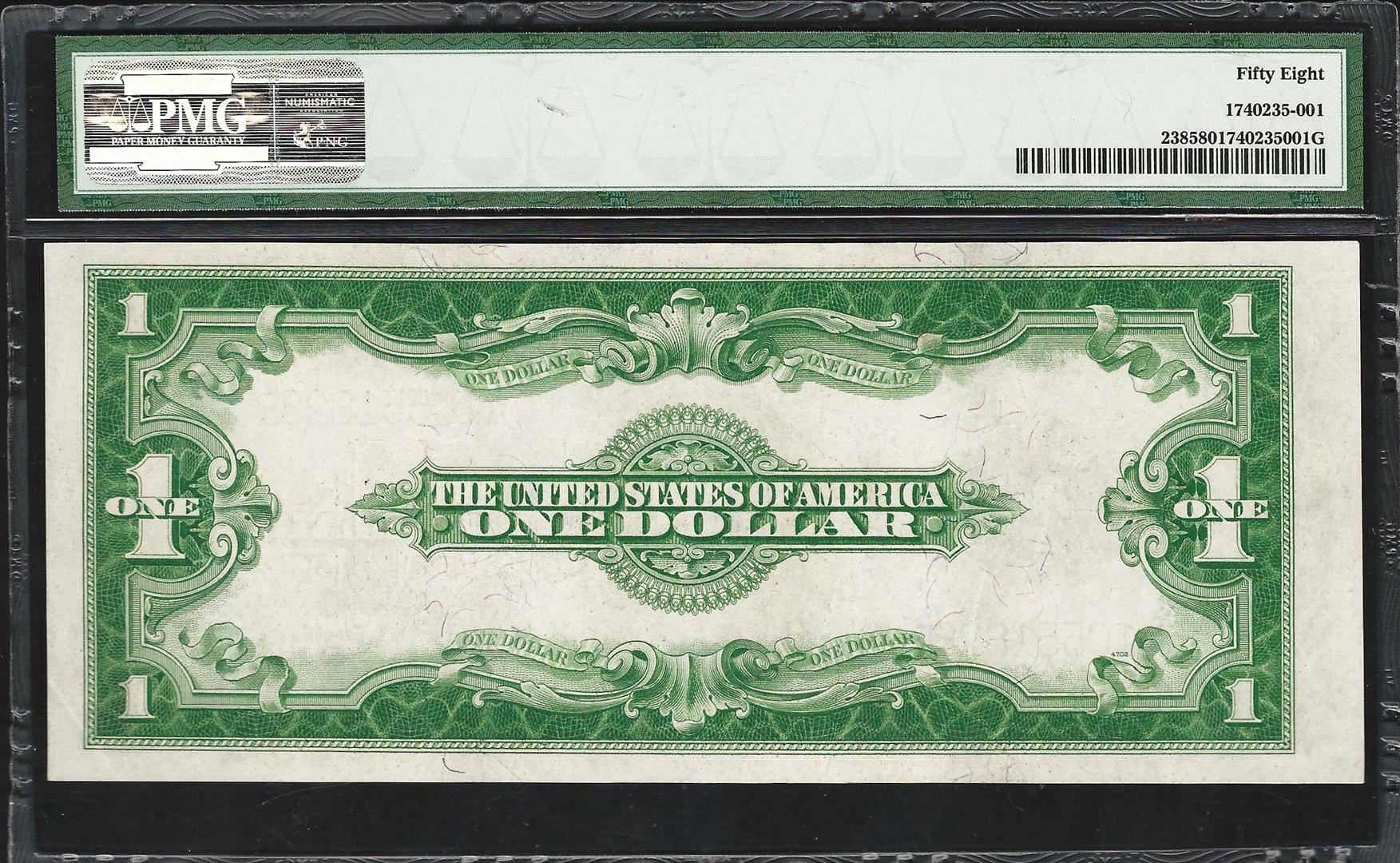 One 1923 $1 Silver Certificate Note Fr.238 PMG Choice About Uncirculated 58. PMG Appraised.