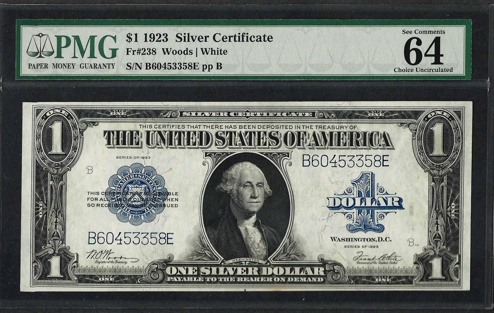 1923 $1 Silver Certificate Note Fr.238 PMG Choice Uncirculated 64EPQ