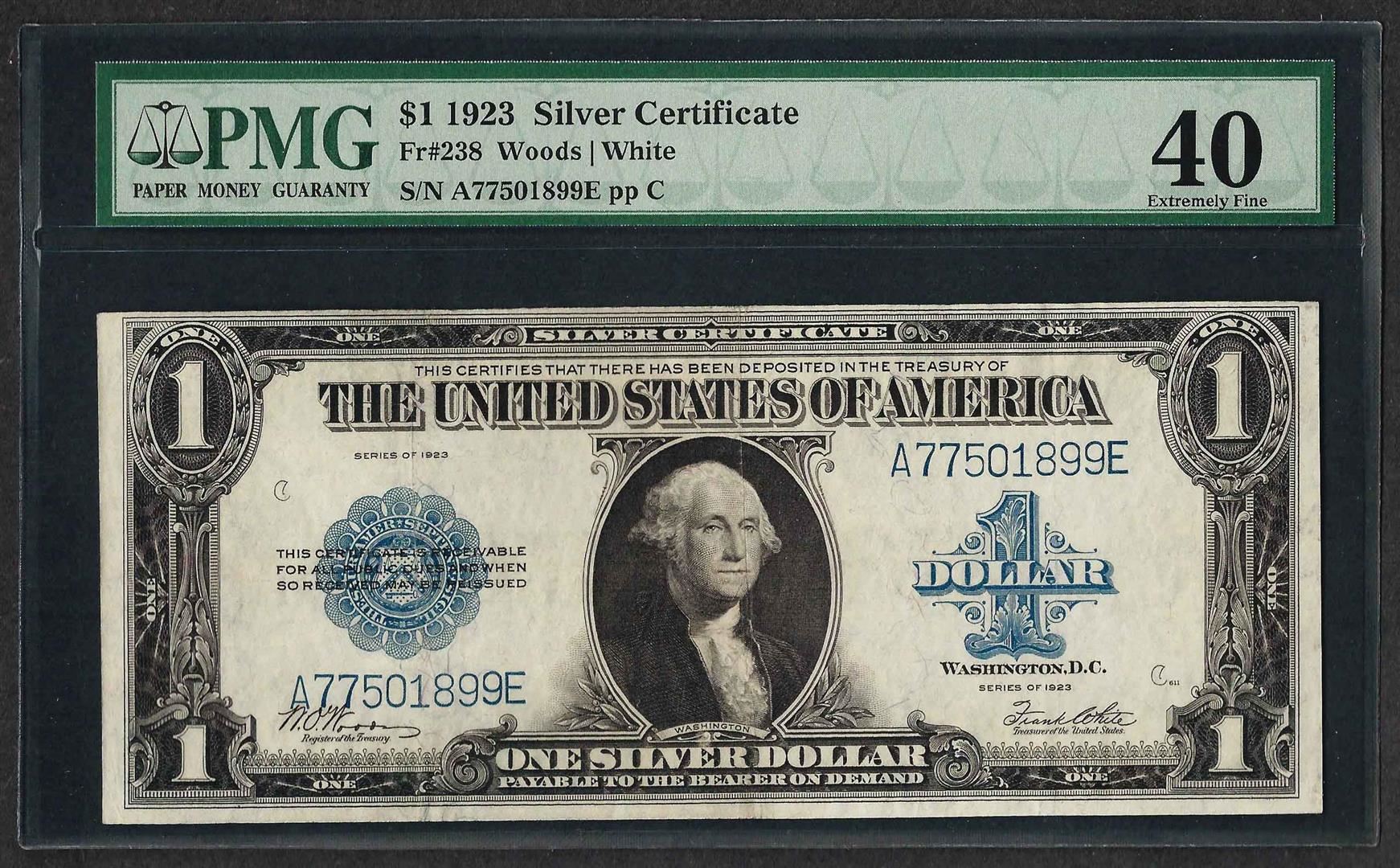 One 1923 $1 Silver Certificate Note Fr.238 PMG Extremely Fine 40. PMG Certified.