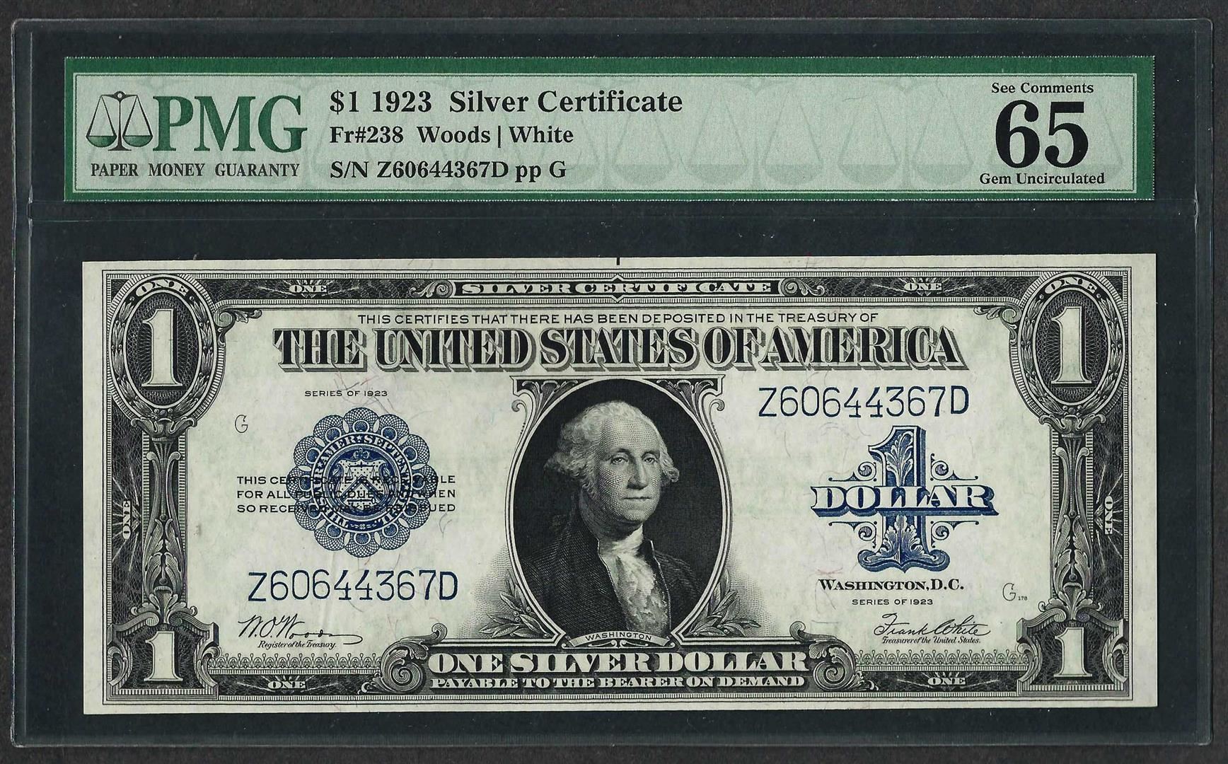 1923 $1 Silver Certificate Note Fr.238 PMG Gem Uncirculated 65EPQ