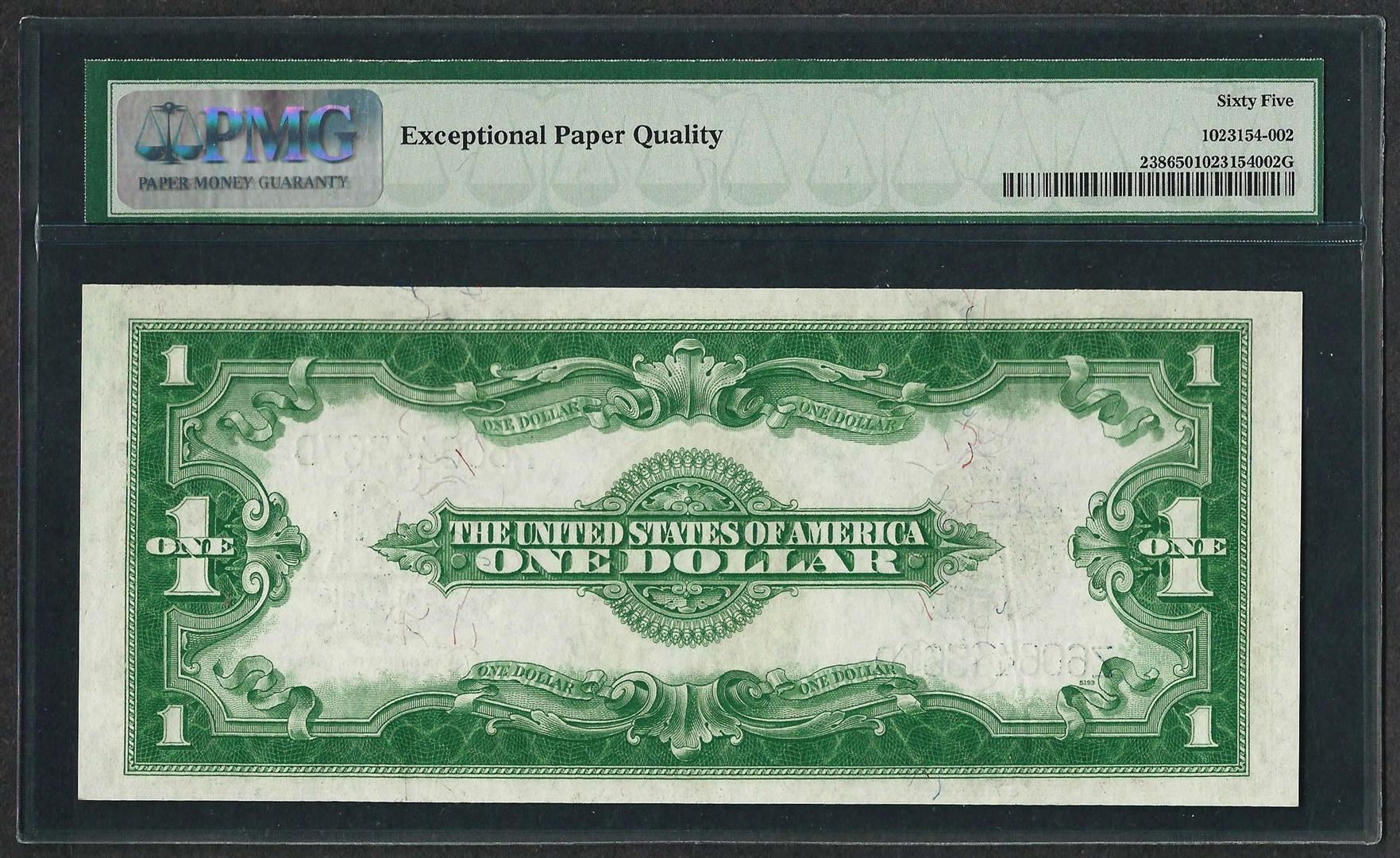 One 1923 $1 Silver Certificate Note Fr.238 PMG Gem Uncirculated 65EPQ. PMG Certified.